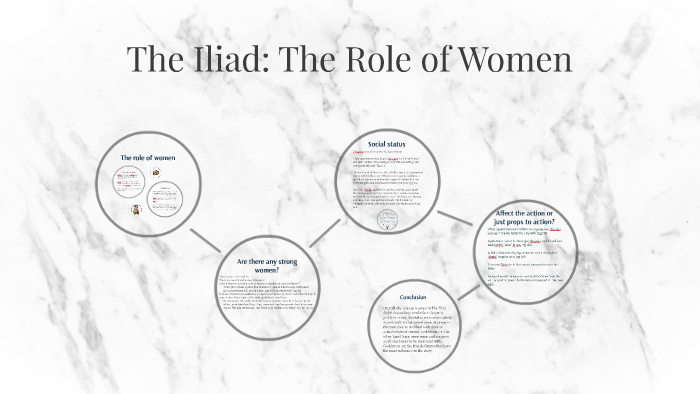 The role of women in the Odyssey is a bit aberrant. Paralyzed by their unfortunate circumstances they were taken and given as if they were material belongings. The Role of Women in the Iliad Anybody would agree that before women had so little power that they were often used as objects.