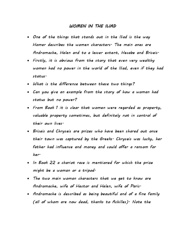 Assignment Role Of Women In The Iliad Iliad Achilles