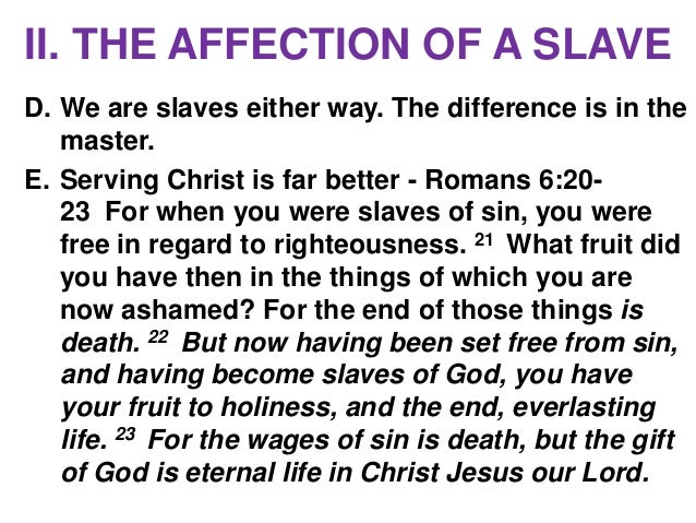The Bible says that now I have placed my faith in Jesus Christ I have been bought with a price 1 Corinthians 620 am a slave of Christ 1 Corinthians 722 and belong to the Lord Romans 148. I want to be a slave I dont know why but I constantly fantasize about being a slave. Why i want to be a slave.