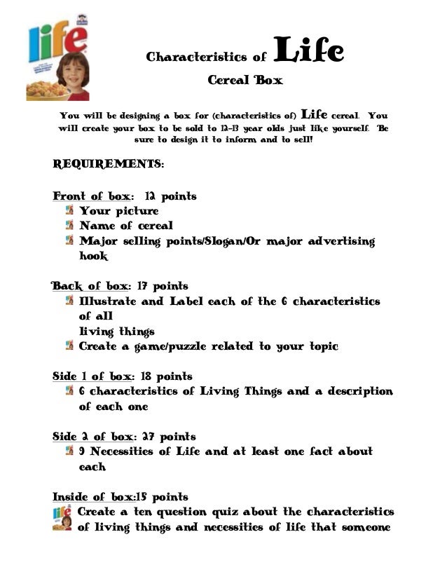 Characteristics Of Life Cereal Box