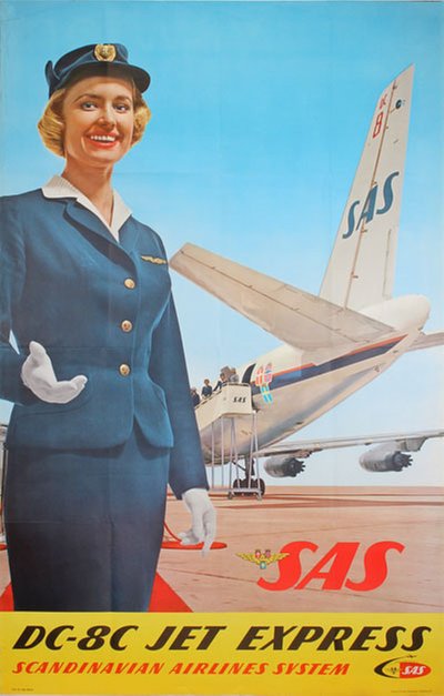 Original Vintage Poster Sas Dc 8 Jet Express For Sale At Posterteam Com