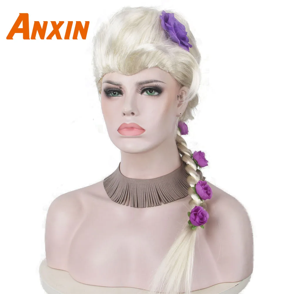 Anxin Long Ponytail Braid White Wigs With Flowers Elsa Cartoon Synthetic Wig For Little Girls Women Children Party Cosplay Drama Synthetic None Lace Wigs Aliexpress