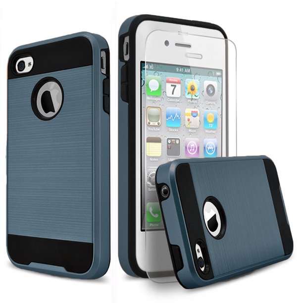 Iphone 4 Case Iphone 4s Case 2 Piece Style Hybrid Shockproof Hard Case Cover With Premium Screen Protector Hybird Shockproof And Circlemalls Stylus Pen Ink Blue Walmart Com Walmart Com